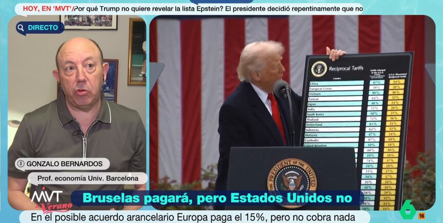 Asimismo, el profesor cree que este 15% no implica que no pueda haber una subida de los aranceles en el futuro: "Si Trump te puede meter un arancel del 15%, ¿por qué no va a meterte mañana el 30%?". "Soy bastante pesimista, porque creo que Trump algún día lo doblará", concluye Gonzalo Bernardos.