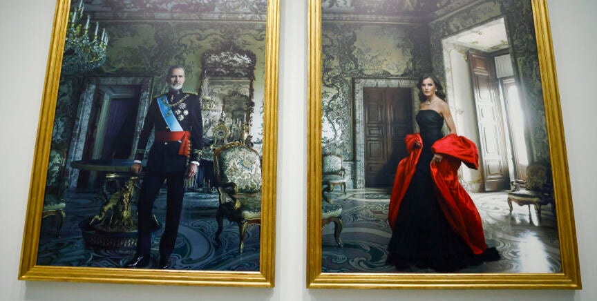 La periodista Marina Valdés ha analizado en Más Vale Tarde los detalles del retrato que la fotógrafa Annie Leibovitz les ha realizado con motivo del décimo aniversario de su coronación. Ambas fotografías se pueden visitar en la exposición del Banco de España 'La tiranía del Cronos' junto a otros relojes, de hecho será la primera vez que se aprecie un retrato siendo una fotografía y no un cuadro. Las fotos se tomaron el pasado 7 de febrero, en el salón Gasparini del Palacio Real de Madrid y han costado 137.000 euros.