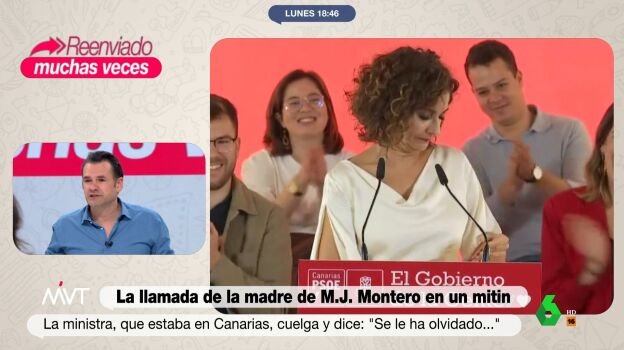 La llamada de su madre que recibió la ministra María Jesús Montero en pleno mitin provoca que Iñaki López comparta una anécdota similar que le ocurre "todos los días". Las de María Lamela y Cristina Pardo, también en este vídeo.