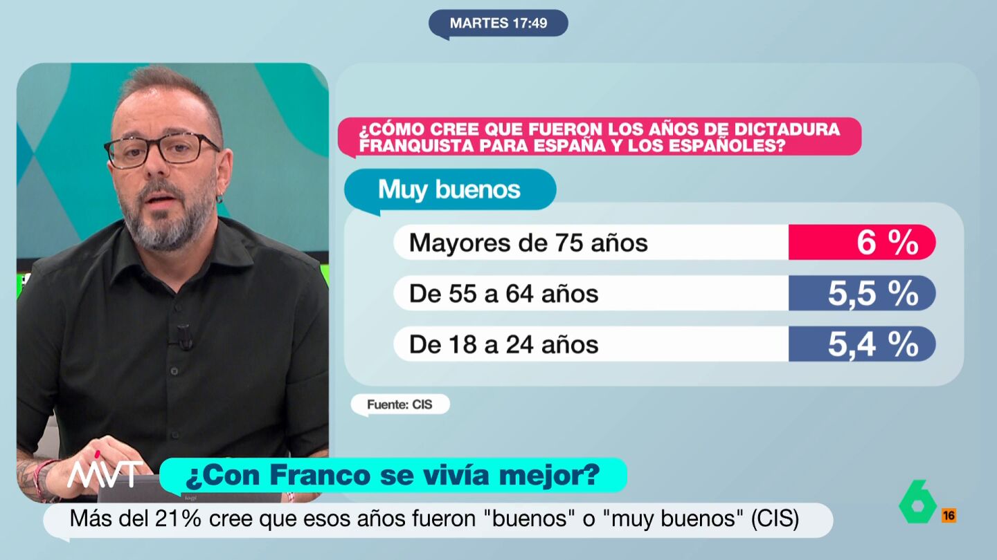 Más del 17% de jóvenes aseguran que la dictadura de Francisco Franco fue mejor que la democracia actual. Así opinan de una época de nuestra historia que no vivieron, según los datos publicados en el último CIS, que también ha preguntado por esta cuestión.