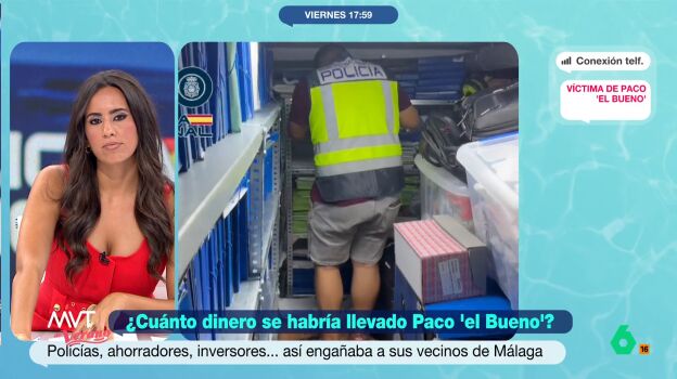 El pasado martes detenían a Paco 'el Bueno', un agente de seguros de Vélez-Málaga que habría estafado a decenas de personas prometiéndoles grandes beneficios por entregarle dinero para que él lo invirtiera. Más Vale Tarde conecta con Antonio, nombre ficticio, una de las víctimas de este supuesto estafador.