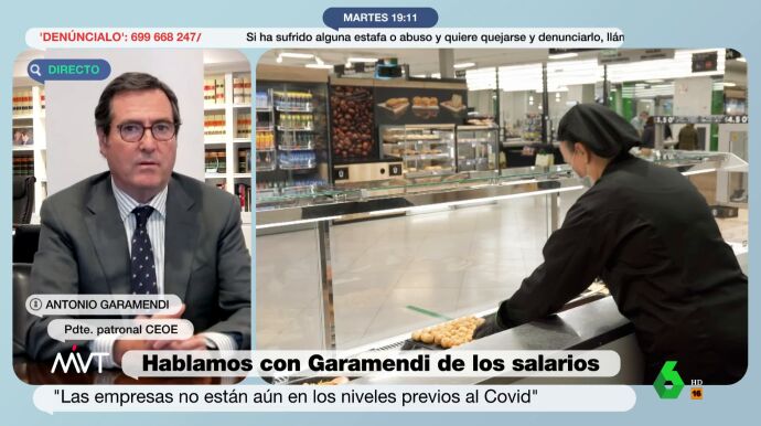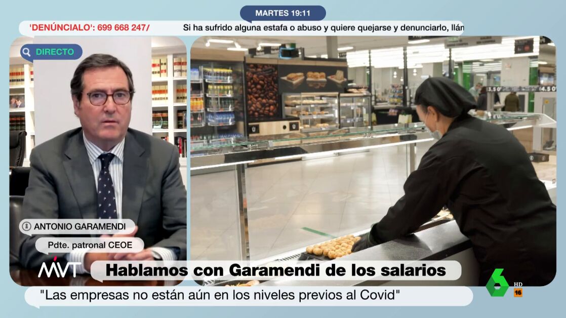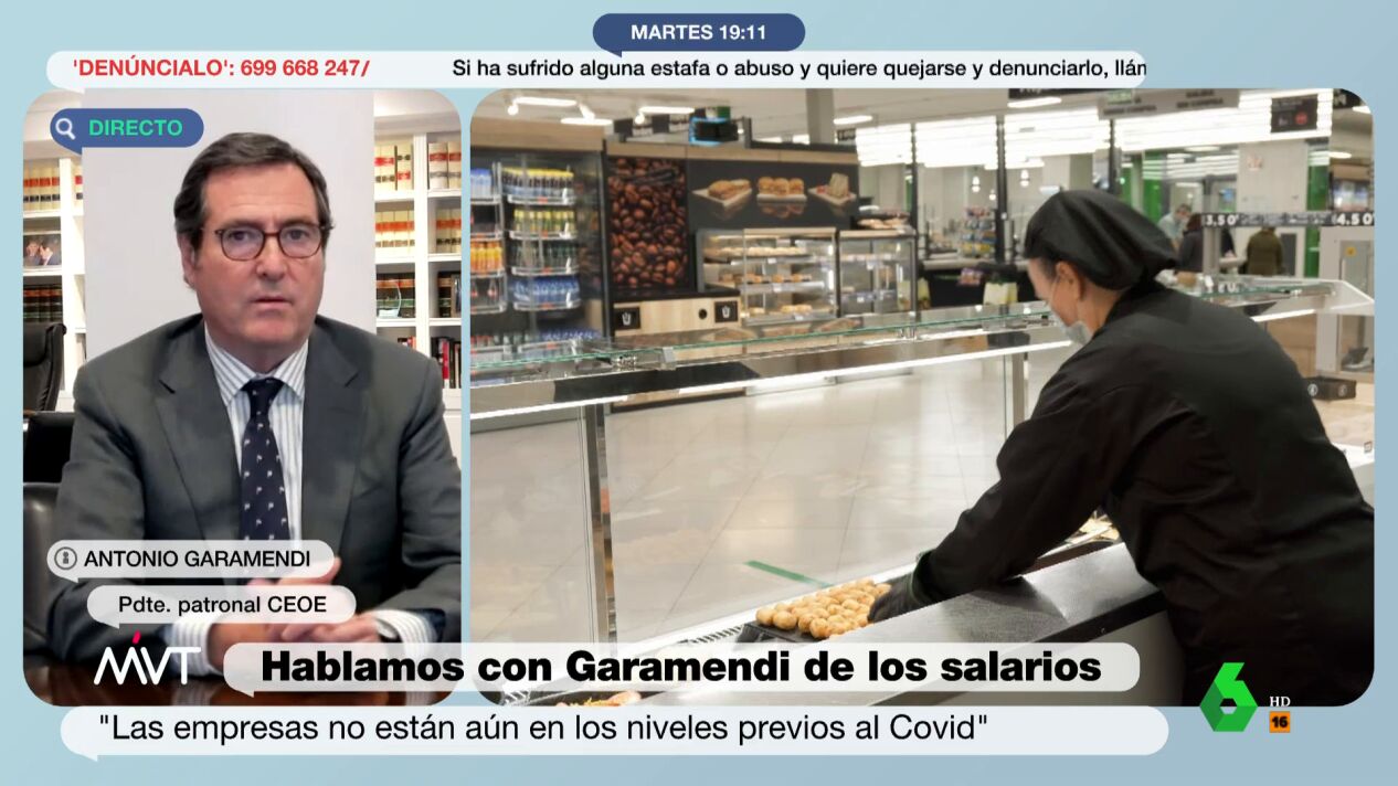 Los salarios reales sufren la mayor caída en 40 años, y según datos del Banco de España, las empresas superan los beneficios previos a la crisis por el coronavirus. Preguntado en Más Vale Tarde por qué no se suben más los salarios, el presidente de la Patronal, Antonio Garamendi, ha defendido que las empresas todavía no están en niveles previos al coronavirus: "Pensad que la mayoría de empresas españolas son pymes, con menos de diez trabajadores, y eso de que se están forrando tampoco es cierto, están sufriendo la inflación igual que los demás".