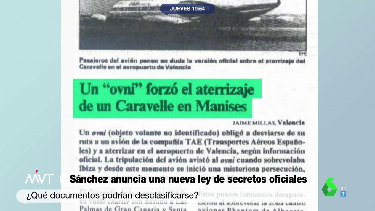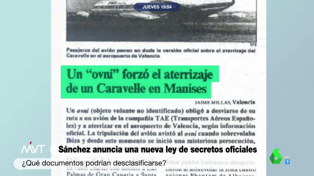 Es el Consejo de Ministros el que tiene la potestad de determinar cuáles son materias reservadas y cuáles secretas. El primer caso es el de los objetos voladores no identificados: los ovnis. Así, se podría saber qué ocurrió en noviembre de 1979, cuando un avión de la compañía TAE se habría cruzado con un ovni del que nunca se ha sabido más.