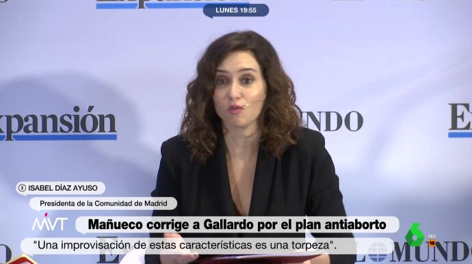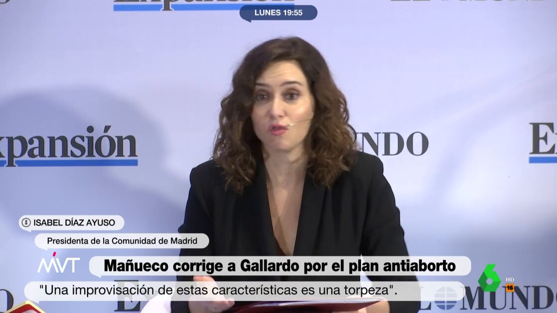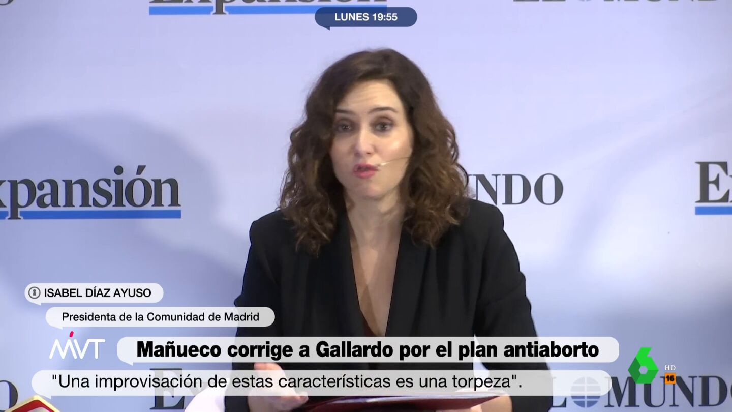 Ayuso aludía así a las polémicas palabras del propio político de extrema derecha al anunciar sus medidas, cuando, a preguntas de la prensa sobre las mismas, admitió abiertamente no saber "mucho de embarazos". Un momento que puede verse aquí: