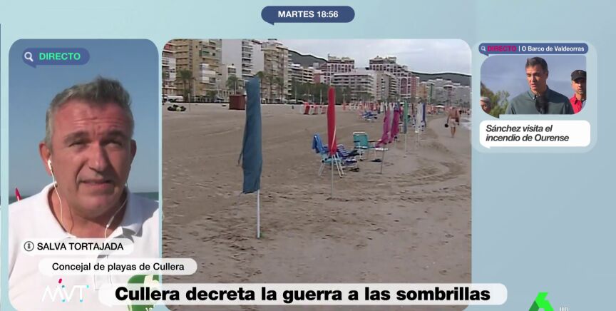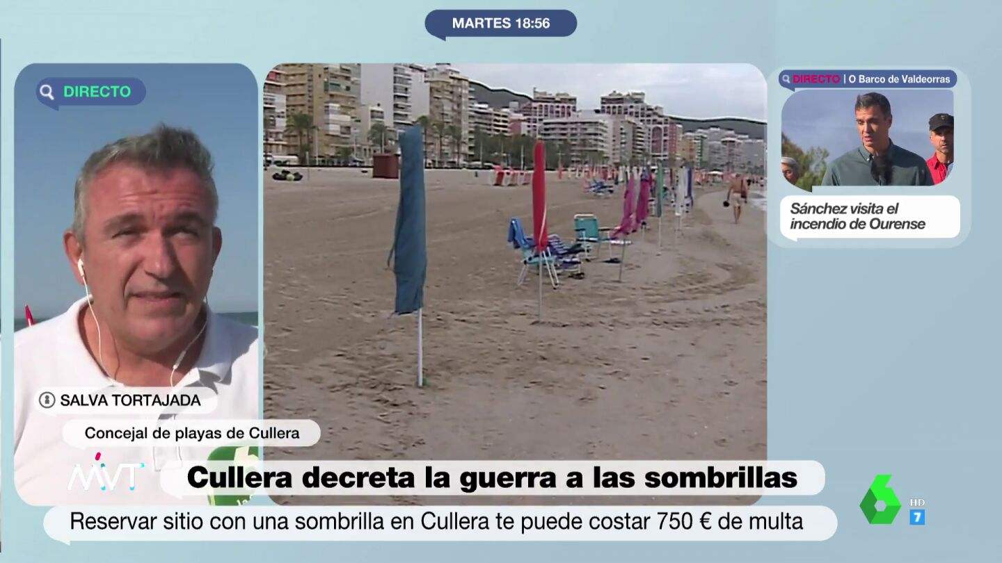 Cullera impondrá multas de hasta 750 euros para aquellos que reserven sitio en las playas a primera hora de la mañana instalando su sombrilla y abandonándola poco después. Una medida cuanto menos controvertida y que ha querido explicar el concejal de playas de la localidad, Salva Tortajada, en una entrevista en Más Vale Tarde: "Hay gente que instala su sombrilla y se va a hacer la compra, la tarea de casa o lo que sea".