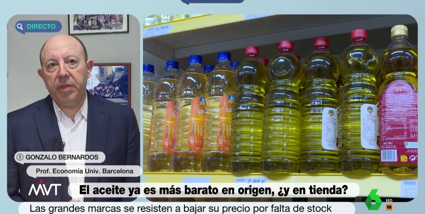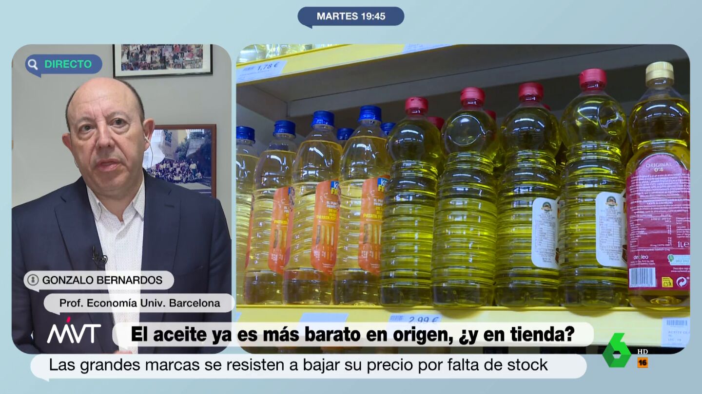 Con el precio del aceite de oliva reduciéndose en origen, cabe preguntarse cuándo notarán los clientes de los supermercados una bajada en sus bolsillos. El profesor de Economía de la Universidad de Barcelona Gonzalo Bernardos ve fundamental la producción de la campaña 2024-2025, con dos requisitos clave para que ese precio baje.