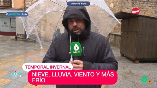Así, el reportero ha destacado que en Ávila hay "dos grados bajo cero de temperatura", con previsión de nieve en las próximas horas. "El aviso es amarillo está hasta este sábado a las 10:00, así que lo mismo en unos minutos mostramos Ávila con un mantito de nieve blanca, que no viene nada mal", ha expresado.
