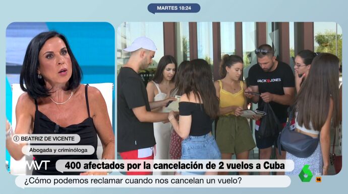 La abogada Beatriz de Vicente señala que la indemnización y reclamación de un vuelo dependen de los plazos. En el caso de que se avise al pasajero de la cancelación con 14 días de antelación, se puede exigir un reembolso o que se le reubique en otro trayecto.