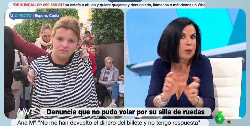"Pero ten cuidado, no vaya a ser que no la ganes y acabes pagando costas. Lo digo porque Ryanair son bastante canallas. Lo mejor es que, a la próxima, elijas otra compañía, porque acumulan muchísimas quejas por trato discriminatorio, ya no te digo con personas que tienen dificultad de movilidad", añade Beatriz de Vicente.