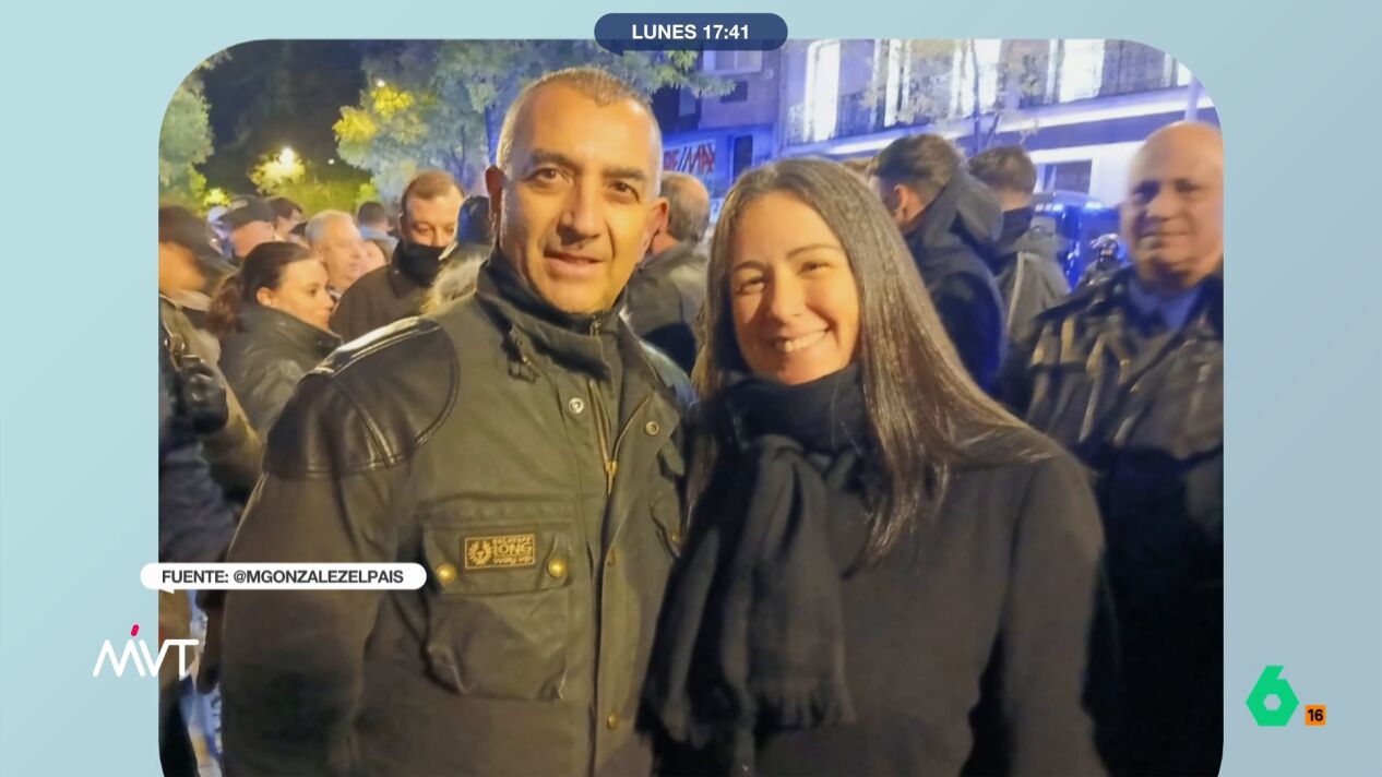 Orsola Mussolini, bisnieta del líder fascista italiano, fue una de las personas que acudió este viernes a una marcha falangista en Madrid, donde se hizo una fotografía con Manuel Andrino, líder de Falange.