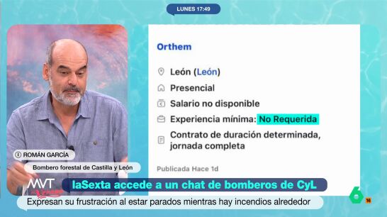 Román García, bombero forestal de Castilla y León, ha pedido dos veces acabar sus vacaciones e incorporarse a la extinción de los incendios, sin respuesta. Cree que la denuncia de Mañueco de falta de medios es "un intento de utilización política".