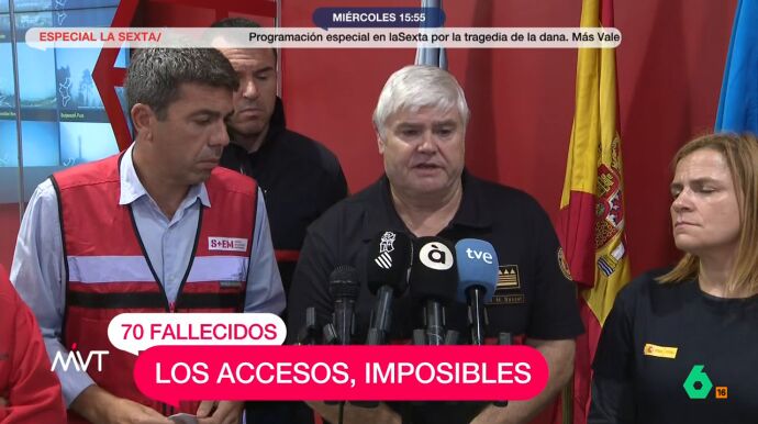 El responsable del Consorcio Provincial de Bomberos de Valencia asegura que era "físicamente" imposible llegar a todos los puntos. "No hemos sido capaces de llegar a todas las víctimas en el momento que más lo necesitaban".