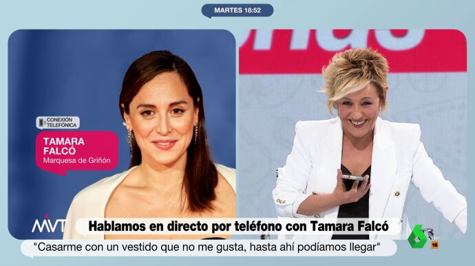 Tamara Falcó ha hablado en primicia en Más Vale Tarde acerca de su "no vestido" de boda, como ella misma ha comentado con Cristina Pardo, después de que la firma 'Sophie et voilà' haya decidido romper su contratocon la aristócrata.