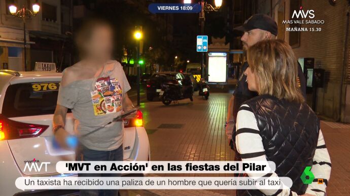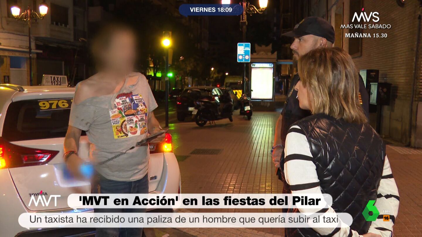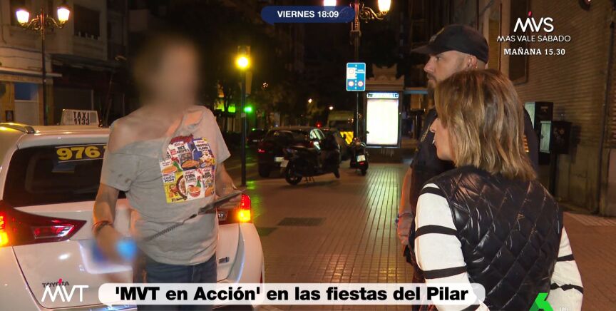 El equipo de Más Vale Tarde acompaña a los agentes durante el operativo especial durante las Fiestas del Pilar en Zaragoza. La noche empieza con un aviso de una pelea entre un taxista y un cliente.