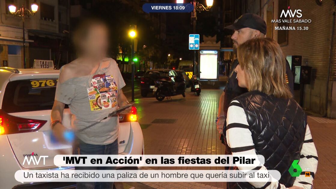 "Me ha parado en el camino de las Torres en el carril de la izquierda, le he dicho que se pusiera en la derecha porque no podía parar ahí en medio. Le ha debido de sentar mal y ha dado un portazo. He bajado a recriminárselo y me ha dado por aquí y por allá", cuenta un taxista a Más Vale Tarde durante las Fiestas del Pilar en Zaragoza.
