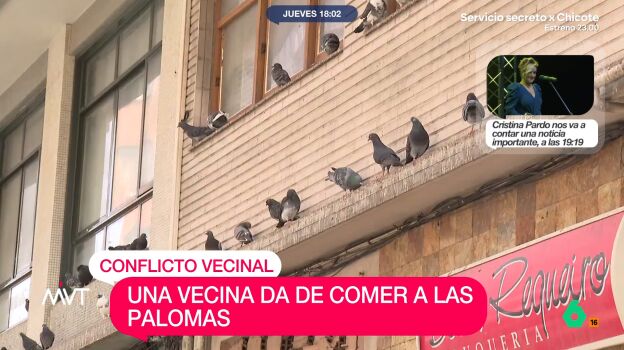 En un barrio de A Coruña ha estallado todo un conflicto vecinal por alimentar a las palomas en la calle. Y es que, cada día, una mujer mayor insiste en dar de comer a estas aves pese a las quejas y denuncias del resto de residentes. No pueden más con la presencia masiva de animales, con las deposiciones, los olores, las plumas, la suciedad... Porque, tal y como han contado a Más Vale Tarde, no pueden ni tender la ropa fuera de sus casas.