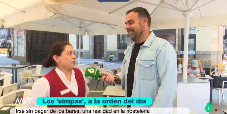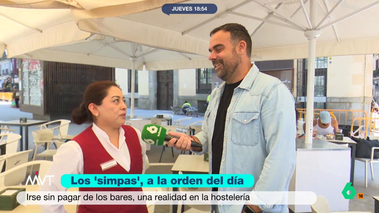 Javier Bastida se ha acercado a varios bares y restaurantes para ver si los 'simpas' son habituales. Una camarera le cuenta que ha sufrido muchos 'simpas'. "Vigilan que tú estés liada con los clientes y se van", explica. Ella, en cuanto lo detecta, sale para intentar pillarlos y hacerles pagar.