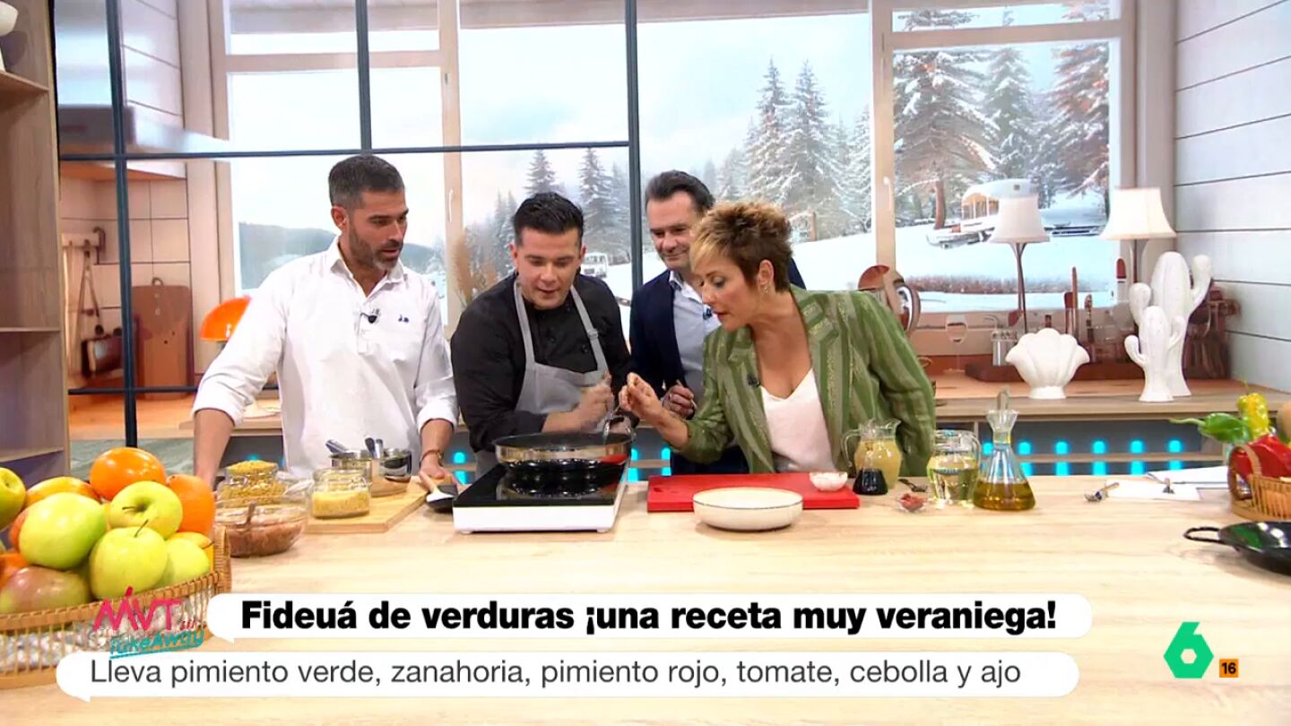 El chef elabora, en Más Vale Tarde, la receta y cocina la mejor fideuá de verduras con unos fideos fritos para disfrutar de una comida sana.