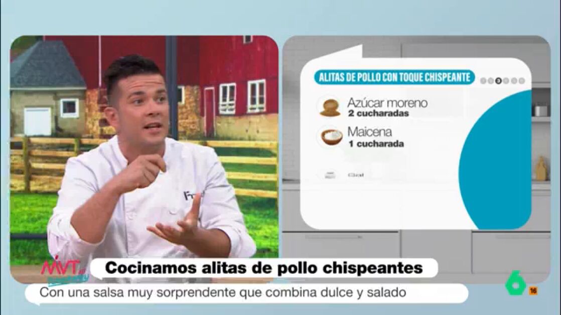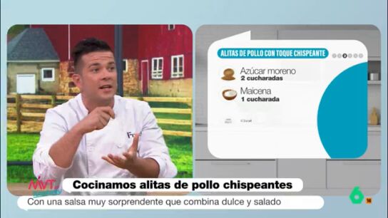 "El hilo conductor de estas alitas va a ser la salsa, la que nos va a excitar totalmente", comenta el chef Carlos Maldonado. La clave está en preparar una salsa agridulce con un toque picante utilizando los ingredientes mencionados, aunque Maldonado enfatiza la importancia de la improvisación en la cocina: "En casa podéis coger lo que os dé la gana".