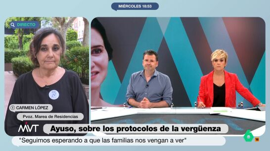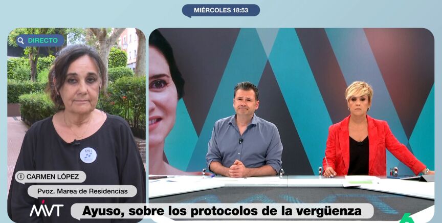 Carmen López, portavoz de Marea de Residencias, ha intervenido en Más Vale Tarde para valorar las recientes declaraciones de Isabel Díaz Ayuso sobre las causas abiertas por los llamados "protocolos de la vergüenza", relacionados con la gestión en residencias durante la pandemia.
