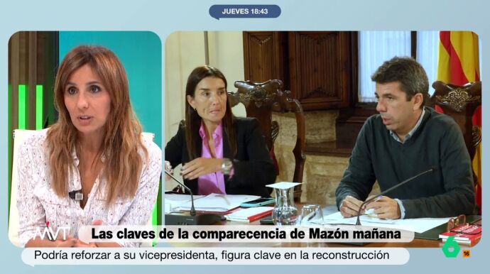En el vídeo sobre estas líneas, la periodista señala que dentro del comité de dirección del partido "hay debate entre los que consideran que se estaban pasando en el apoyo a Mazón, que se quemaban, y los partidarios de la defensa".
