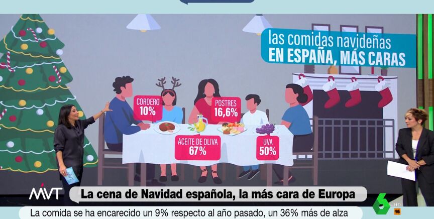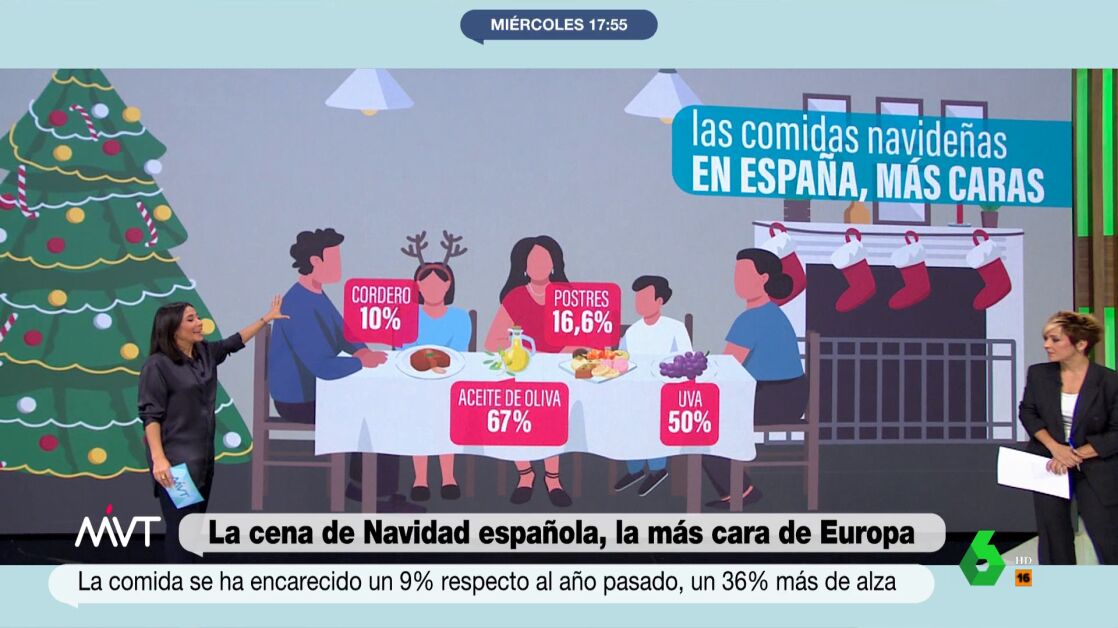 España es el país europeo en el que más suben los precios de los alimentos en época navideña. De media, en la UE suben entorno al 6,6% y en países como Portugal un 2,8%. Entre los alimentos más caros, el cordero, los turrones o el aceite de oliva.