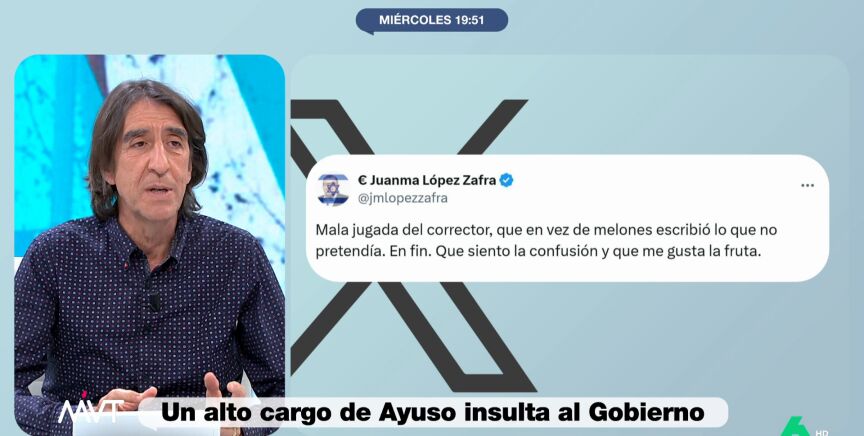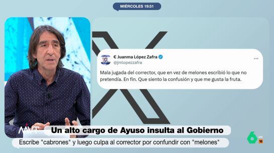 El director general de Economía de la Comunidad de Madrid, Juanma López Zafra, ha llamado "cabrones" al Consejo de Ministros por los retrasos en los Cercanías. Después ha culpado al corrector, asegurando que quería poner "melones" y cerrando su tuit con un "me gusta la fruta".