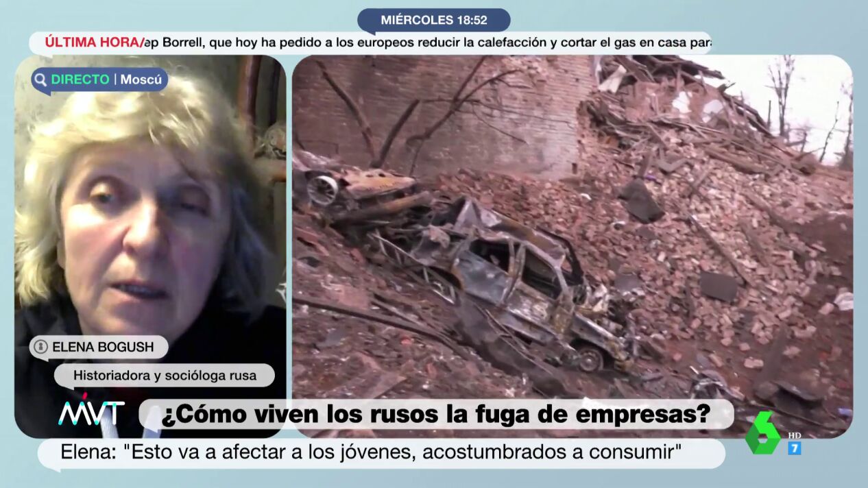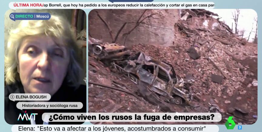 Elena Bogush, historiadora y socióloga rusa, ha hablado en Más Vale Tarde de los efectos que las sanciones de Estados Unidos y la Unión Europea podrían tener sobre la opinión de la población de Rusia acerca de la invasión a Ucrania. "Hay mucha gente que ni siquiera quiere saber nada", asegura.