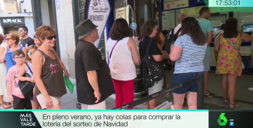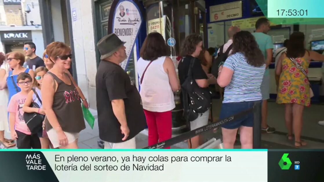En pleno verano y a más de 30 grados de temperatura ya hay kilométricas colas para hacerse con un décimo de lotería de Navidad en la mítica administración madrileña de Doña Manolita. Tanto es así que, a 31 de julio, algunos de los números más codiciados ya se han agotado.