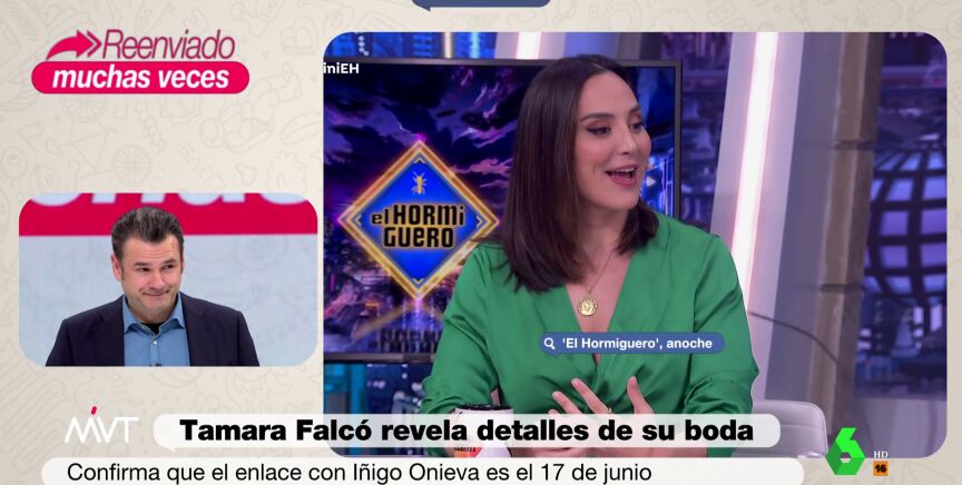 Tamara Falcóha hablado sobre su futura boda con Íñigo Onievaen El Hormiguero, programa en el que colabora, dando detalles de cómo será el enlace. "Me caso con el hombre al que quiero", ha afirmado.