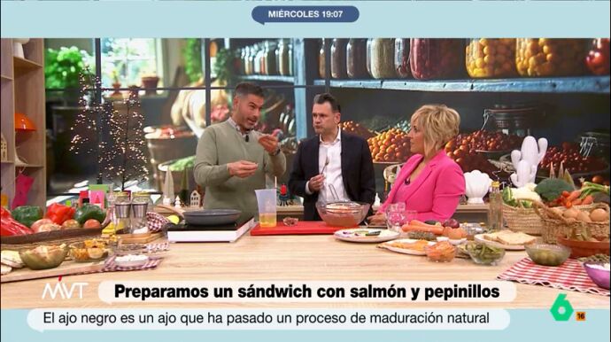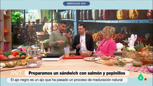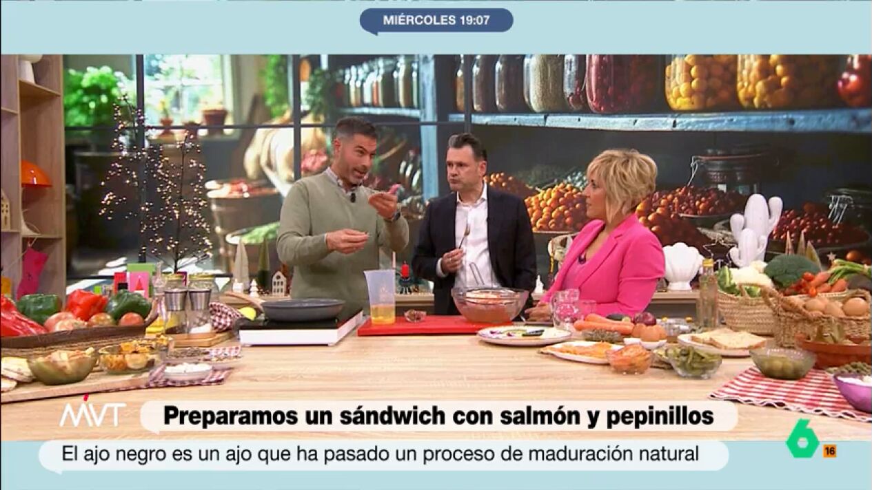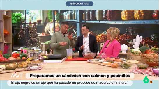 Pablo Ojeda vuelve a Más Vale Tarde con sus deliciosas recetas que, además, también son saludables y nutritivas. El nutricionista propone a Iñaki López y Cristina Pardo hacer un sándwich al que incorpora una salsa que tiene, entre sus ingredientes, el ajo negro.