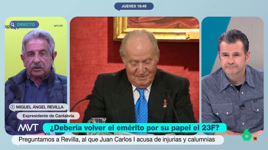 Miguel Ángel Revilla ha hablado en Más Vale Tarde ante una posible vuelta de Juan Carlos I a España. Ante un posible regreso del emérito, después de la desclasificación de los documentos del 23-F y de que Alberto Núñez Feijóo, líder del PP, haya expresado que "sería deseable" el retorno del monarca. El expresidente de Cantabria, en ese sentido, ha sido más que claro. "Que venga cuando quiera, nadie se lo ha prohibido", ha afirmado.