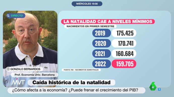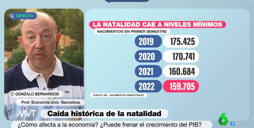 159.705. Es la cifra de niños que han nacido en España durante el primer semestre de 2022. Este dato supone una caída a mínimos históricos, a la vez que sube la cifra de fallecidos. Ante esta alarmante noticia, Gonzalo Bernardos ha sido claro: España va a ser un país que necesite "muchísimos inmigrantes".