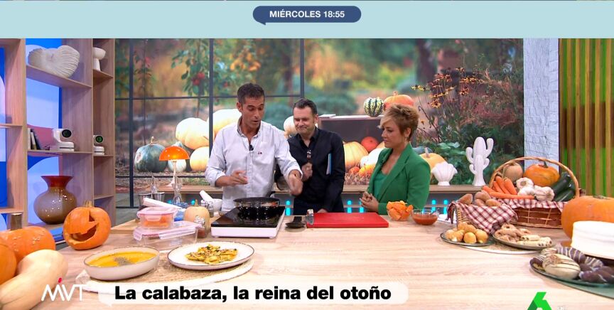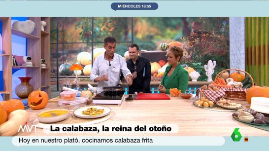 Además, Ojeda muestra paso a paso en el plató cómo cocinar calabaza frita: para empezar, hay que cortar calabaza en dados y rehogarla unos 10 minutos con un poco de aceite, sal y pimienta. Por otra parte, se prepara un majado de ajo, orégano y un poco de agua. Se mezcla en la sartén y se chafa con un tenedor, para a continuación añadirle un poco de pimentón picante al gusto y un poco de vinagre. La preparación se termina con un poco de tomate triturado. Puedes verla completa en el vídeo que ilustra estas líneas.