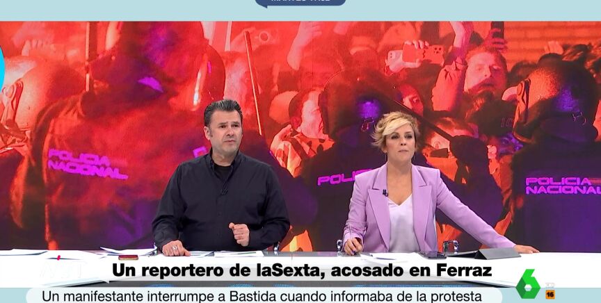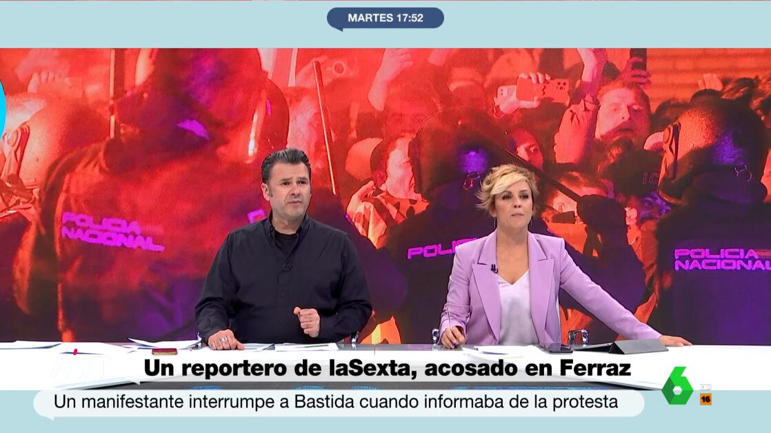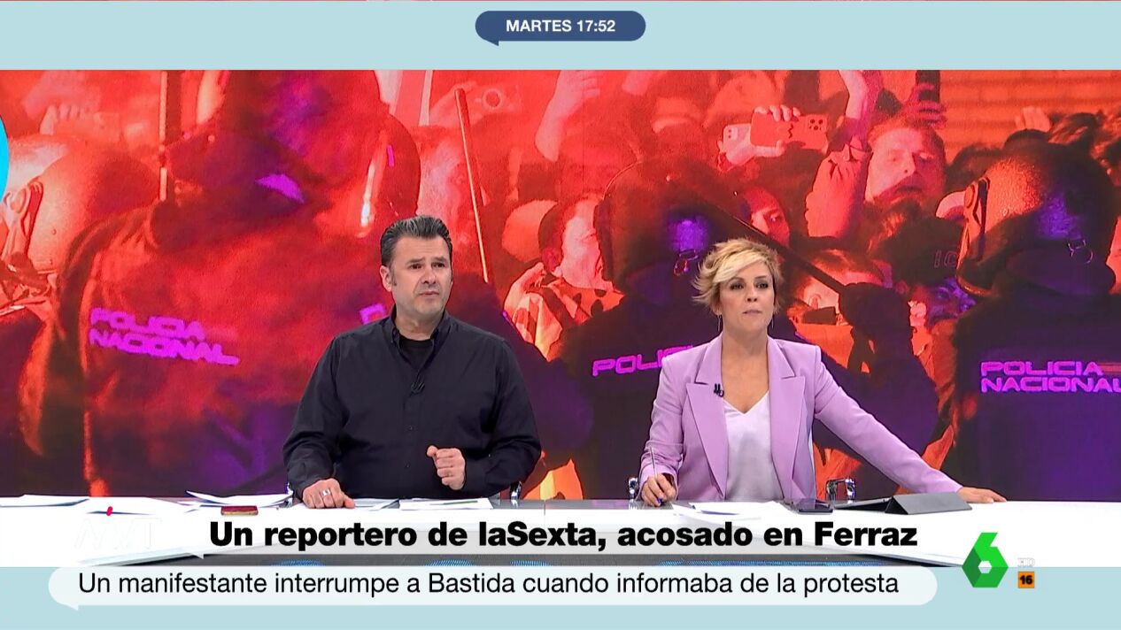 La presentadora de Más Vale Tarde, Cristina Pardo, ha comentado en directo la violenta situación en la que se vio inmerso Javier Bastida durante la manifestación de este lunes en Ferraz. El periodista fue insultado y agarrado constantemente durante su intervención en directo en 'El Intermedio'. Una de esas personas que le interrumpió durante el directo fue un hombre que gritaba sin parar "Arnaldo Otegi asesino".