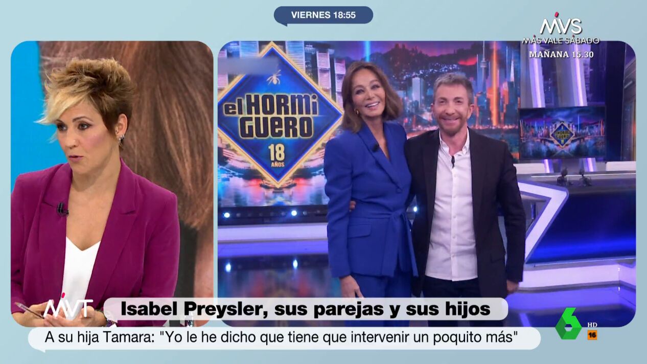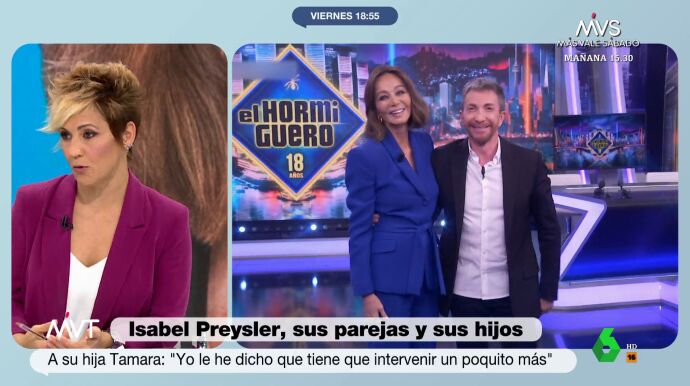 La presentadora cree que Tamara Falcó "podría hablar más" en 'El Hormiguero', una opinión que comparte con Isabel Preysler. La socialité expresó que hija interviene menos en el programa que Pardo o Roca porque "va con más cautela".