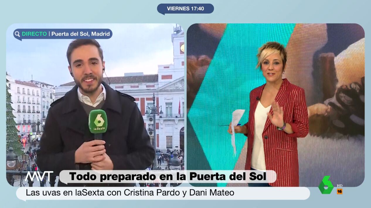 El reportero se ha desplazado hasta el mismo balcón desde donde Cristina y Dani Mateo despedirán el 2023 para laSexta. Christian ha preguntado a la presentadora: "No sé como de importante es los cuatro grados que va a hacer a las 12 de la noche el próximo día 31 para ese vestido espectacular que me han dicho que vas a llevar".