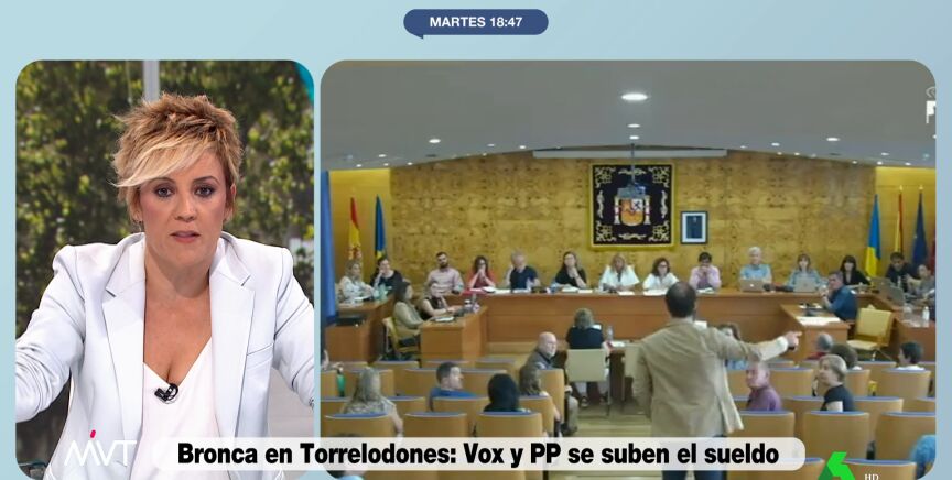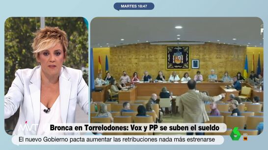 "Llevan cuatro días en el cargo y se han subido el sueldo", comenta indignada Cristina Pardo en este vídeo, donde analiza la decisión de PP y Vox de subirse el sueldo tan solo unos pocos días después de llegar al Ayuntamiento de Torrelodones.