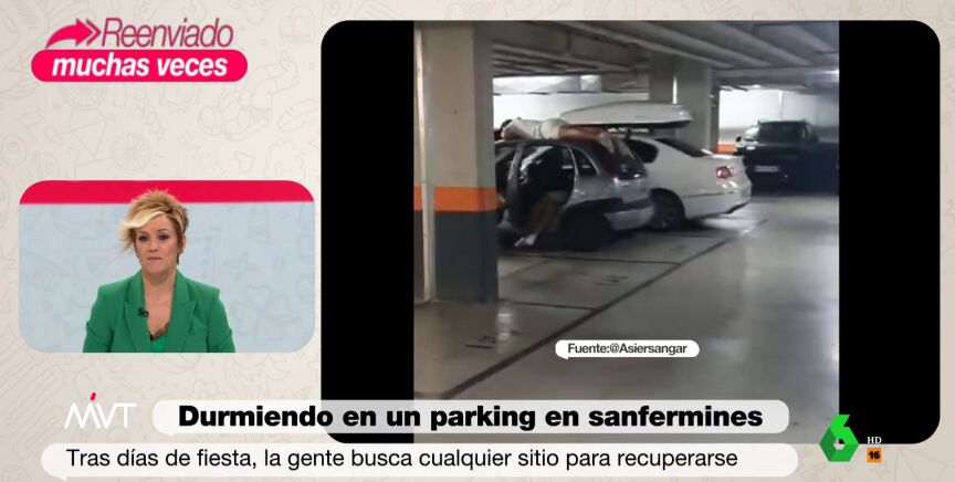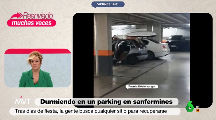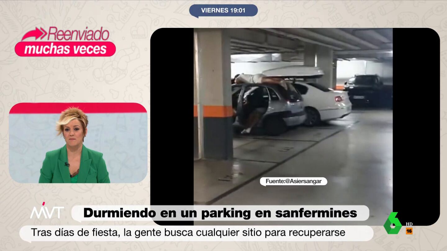 Así lo explicó en Más Vale Tarde tras ver las imágenes de un grupo de personas durmiendo en un parking, a pierna suelta en coches abiertos de par en par, en el suelo o incluso encima del capó. "No puedo decir que me sorprenda, porque en Pamplona esta es una estampa muy habitual. En sanfermines huele todo. Las zapatillas que se quitan ellos para poder dormir, ocho horas antes te han tirado vino...", explicaba la presentadora.