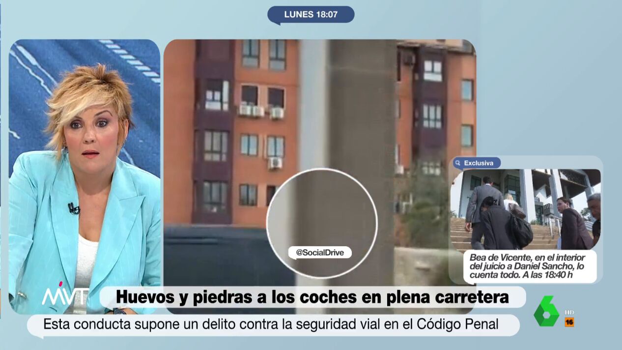 "Te puedes salir de la carretera y te matas por culpa de un gilipollas que está tirando una piedra", afirma la presentadora. María Claver desvela que "a mi me pasó hace veintitantos años, con una piedra también, en la M30" y sostiene que "lo razonable es que los padres tengan controlados a sus hijos".