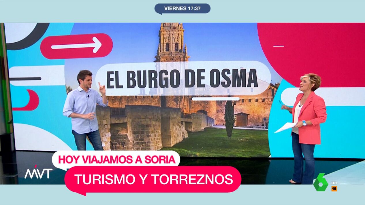 "Propongo una escapada fantástica de fin de semana a dos de los pueblos más bonitos de esta provincia. El Burgo de Osma, una villa medieval con una imponente catedral y calles porticadas. Muy cerca de ahí está San Esteban de Gormaz, un pueblo con mucho encanto que nos recibe con un puente románico. En este pueblo se preparan los mejores torreznos del mundo", explica el periodista.
