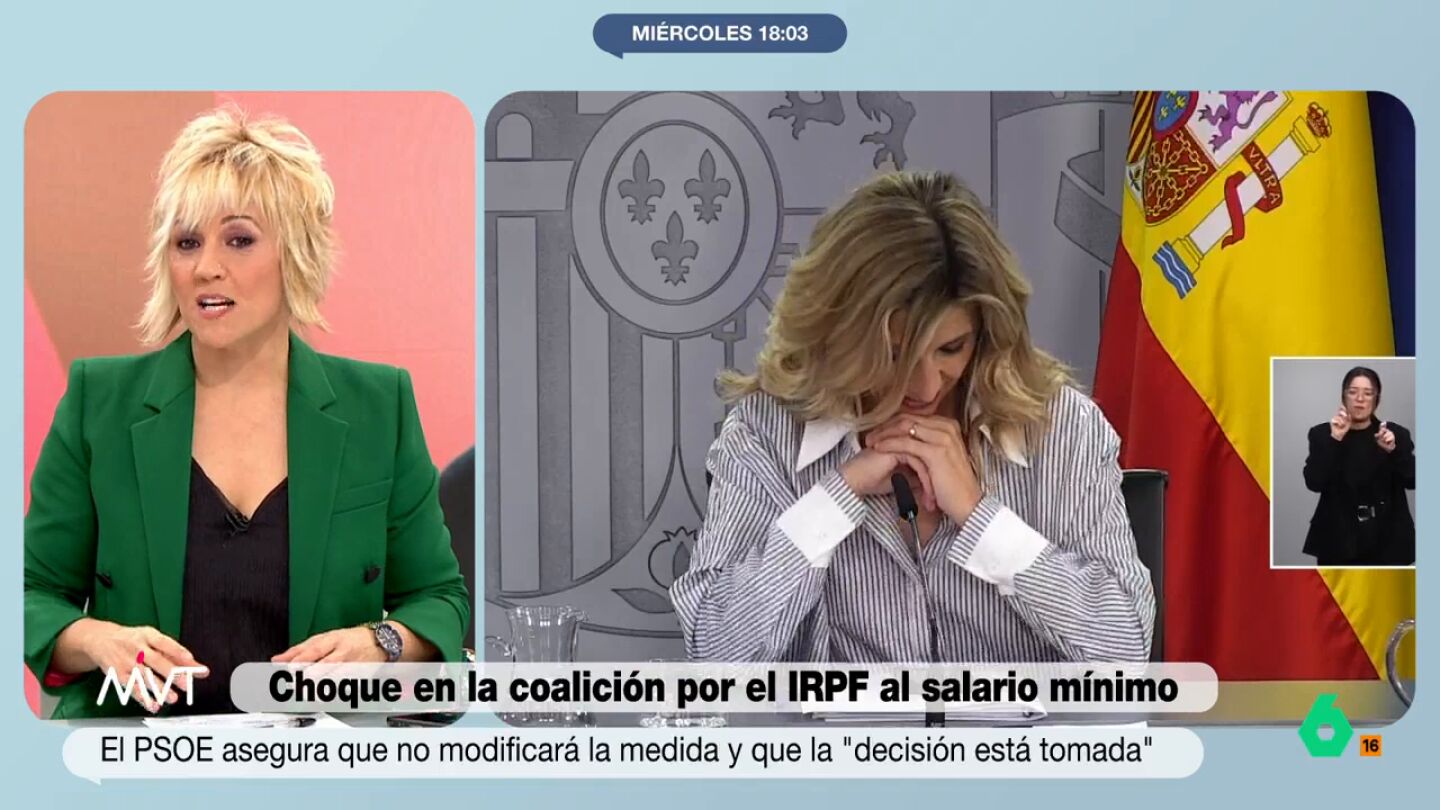 "¿Qué eliges, defender aquello que te parece más coherente con lo que has venido pensando, o defender lo que te parece más popular o populista?", comenta Cristina Pardo sobre el choque entre PSOE y Sumar por el IRPF en el salario mínimo.
