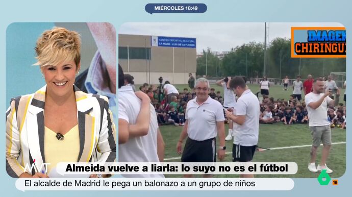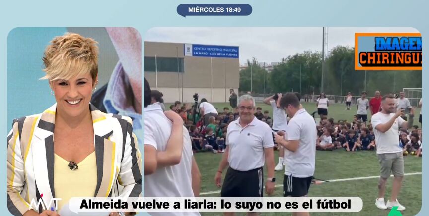 En las imágenes del acto se puede ver cómo Almeida centra un balón. Sin embargo, como ya ha demostrado en otras ocasiones, la puntería no es precisamente su fuerte. El esférico acabó impactando directamente en un grupo de niños que asistía al evento. "Ha vuelto a la política del balonazo", bromeó Cristina Pardo al ver las imágenes del regidor madrileño.