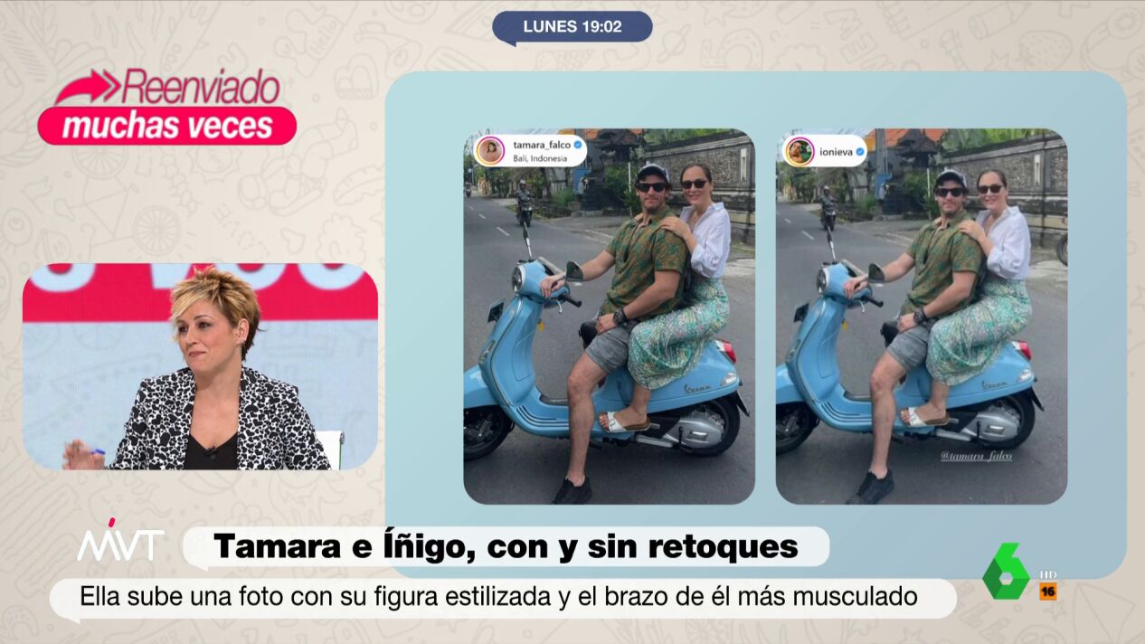 "En la foto que ha colgado Tamara Falcó a ella se le ve algo más fina, más estilizada", precisa Cristina Pardo, que señala que, en esa misma imagen, a él se le ve "más cachas". Ante el debate al respecto el plató, la presentadora lanza una reflexión: "Os voy a decir una cosa: es mucho más fácil utilizar un filtro que hacerle caso al nutricionista, sobre todo si estás de vacaciones, eso es así". "Que estás de vacacione y de pronto de comes todo lo que no te has comido en el último mes", agrega.