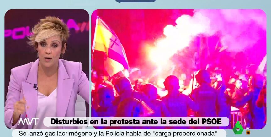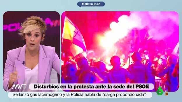 El líder de Vox pidió a la Policía desobedecer las "órdenes legales" tras los altercados en la manifestación en Ferraz, una afirmación que ha sido replicada con ironía por la presentadora de Más Vale Tarde.