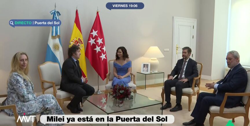 Tras emitir en directo en el programa 'Más Vale Tarde' la reunión, la presentadora, Cristina Pardo, ha destacado que Ayuso ha recibido a Milei con "todo el aparataje" pero que el presidente argentino ha estado "un poco tieso".