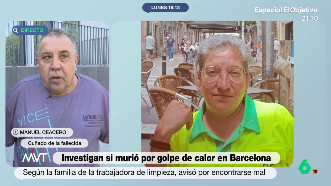 Este sábado fallecía una mujer de 51 años en Barcelona y se está investigando si su fallecimiento fue debido a un golpe de calor. Monteserrat era trabajadora del servicio de limpieza de la ciudad condal. Durante su jornada, se habría puesto en contacto con su encargado para manifestarle que se encontraba bien pero, este le dijo que tomara agua fría y volviera al trabajo. Tras una durísima jornada de trabajo, se desmayaba y terminaba falleciendo en su casa. Más Vale Tarde conecta con Manuel Ceacero, cuñado de Montserrat.