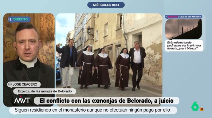 En el vídeo sobre estas líneas, Ceacero responde a Iñaki López sobre si pueden seguir vistiendo de monjas a pesar de haber sido excomulgadas. En su opinión, ese no es el problema, sino que "tendrían que llevar una vida de religiosas y no la llevan".