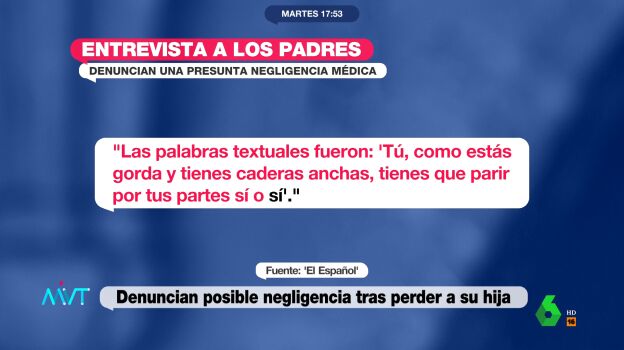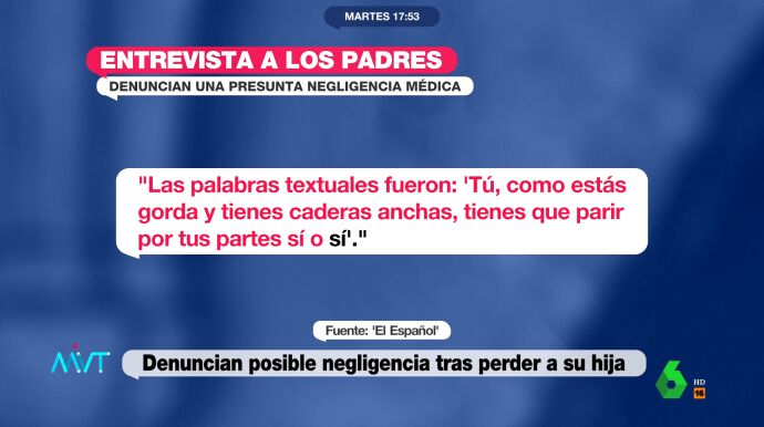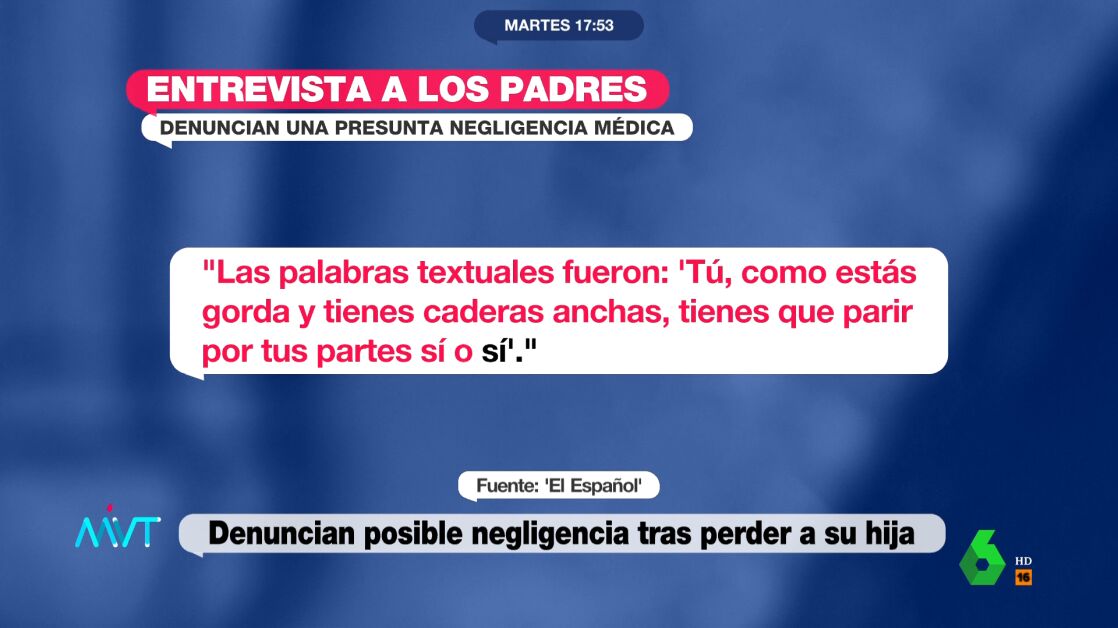 En Más Vale Tarde han contado con el testimonio del periodista Jorge García Badía, de 'El Español', quien ha hablado directamente con la pareja. Cuenta que son ellos los que tienen que salir corriendo a buscar a los médicos porque el monitor fetal no funcionaba supuestamente bien. "Les indicaron que tenía que apretárselo contra la tripa para que ese ultrasonido llegase hasta el bebé y el monitor reflejase las constantes vitales", explica el periodista, quien añade que no resulta muy lógico, ateniendo al relato que hacen los padres, que le digan a ella que tiene que sujetarse el aparato.