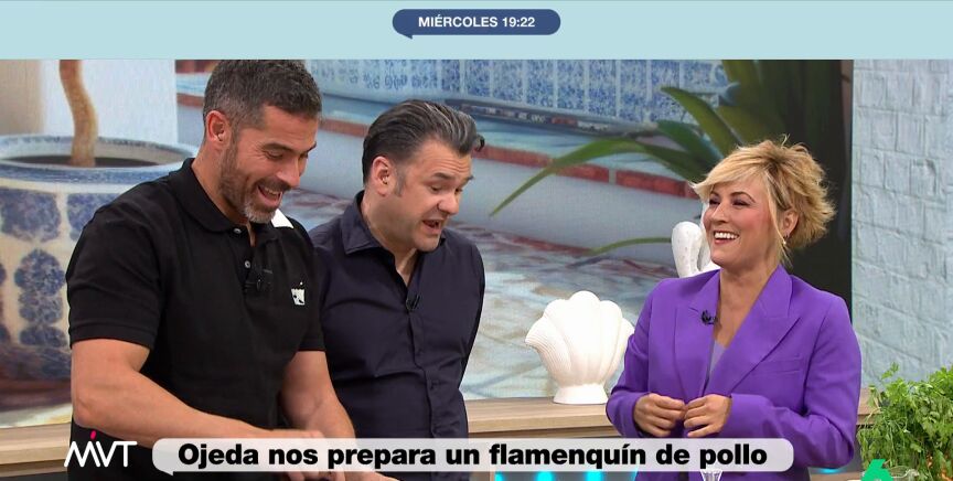 Los presentadores del programa estaban aprendido a elaborar un flamenquín de pollo cuando Cristina ha comentado que había desaparecido un gambón rebozado que había reservado para comerlo más tarde.